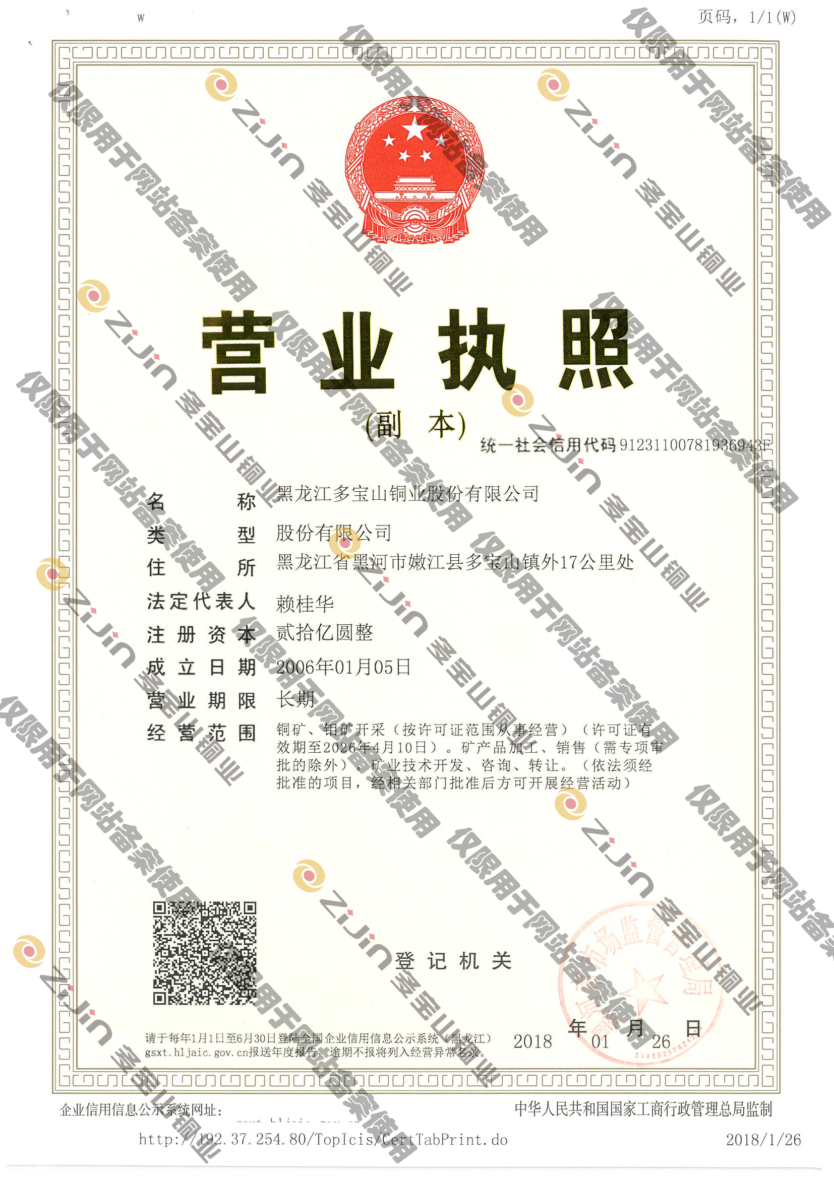 版權(quán)所有:黑龍江多寶山銅業(yè)股份有限公司 本部地址:黑龍江省黑河市嫩江縣多寶山鎮(zhèn)十七公里處 黑ICP備19000985號(hào)